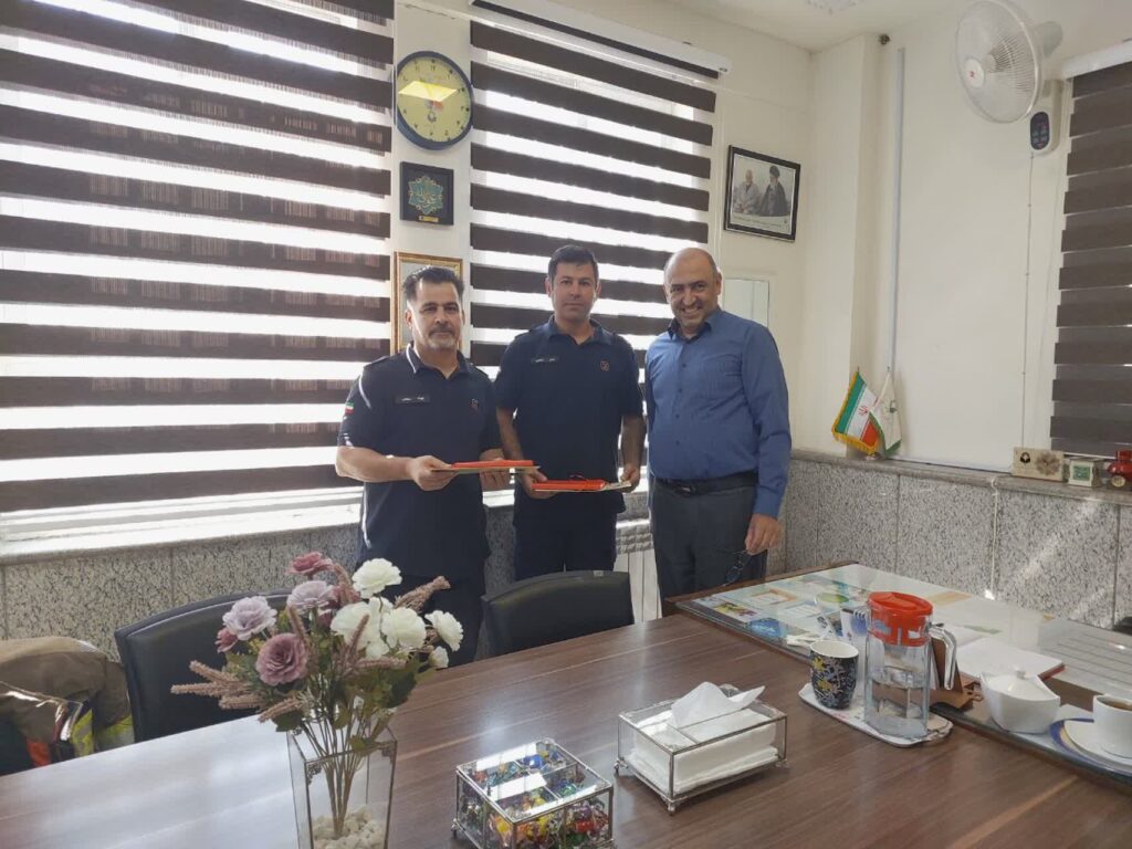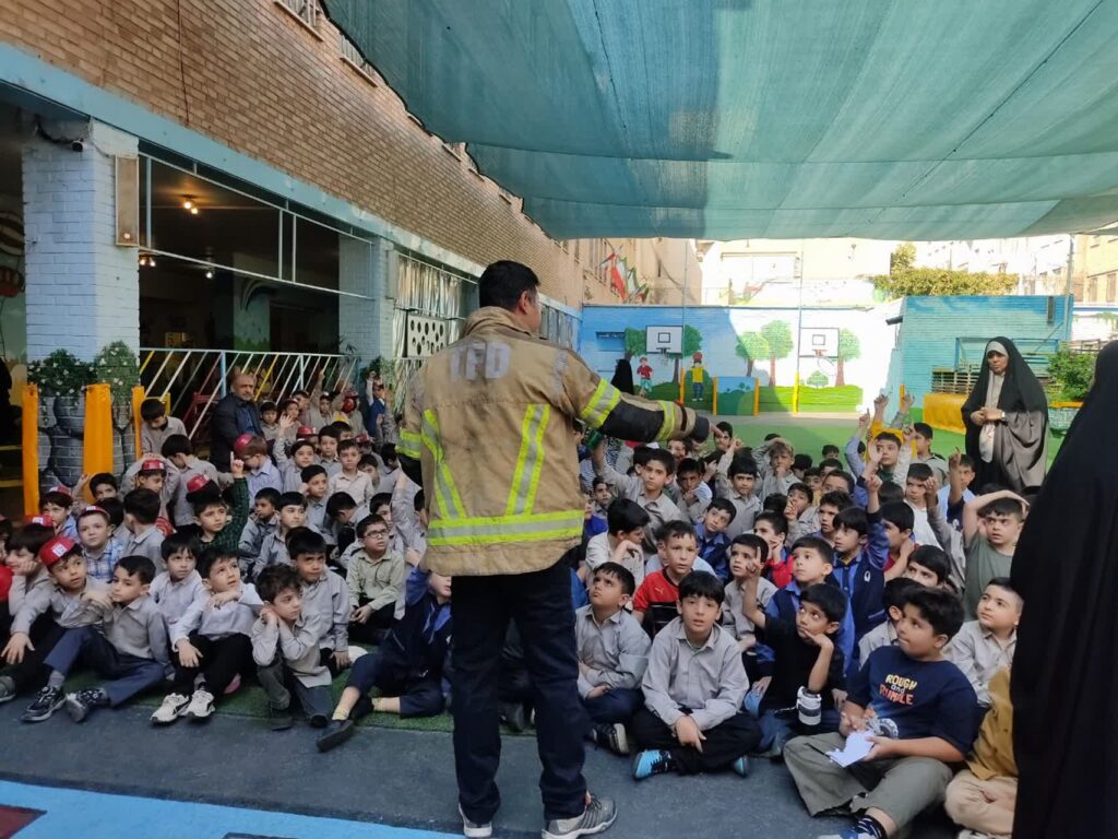 همزمان باروزآتش نشانی و ایمنی بادعوت از۲نفرآتش نشان ضمن آموزش ایمنی به دانش آموزان ازآنها تقدیرشد.